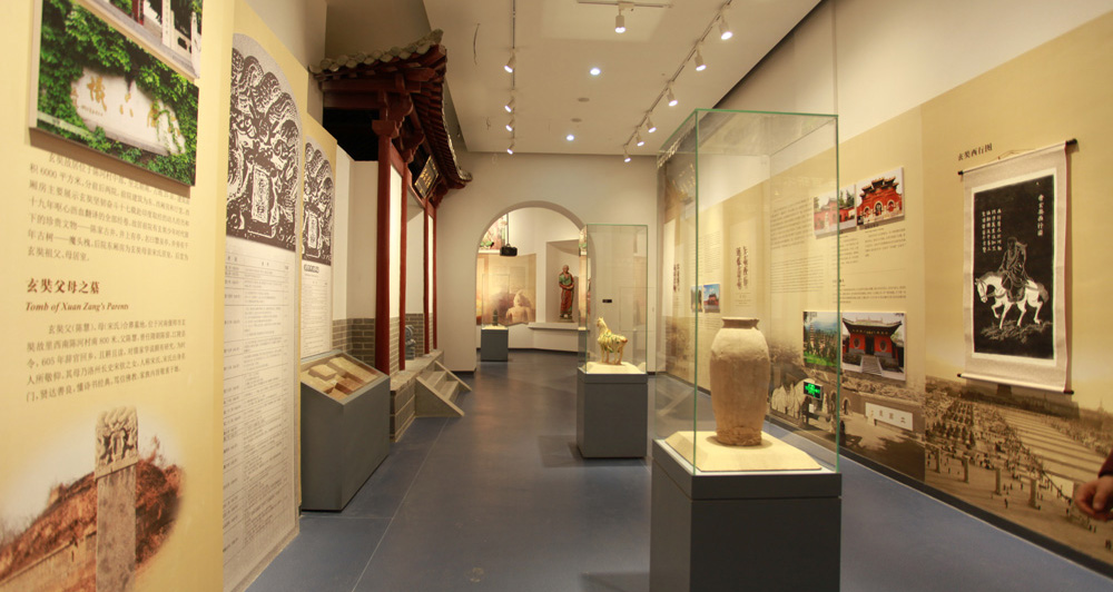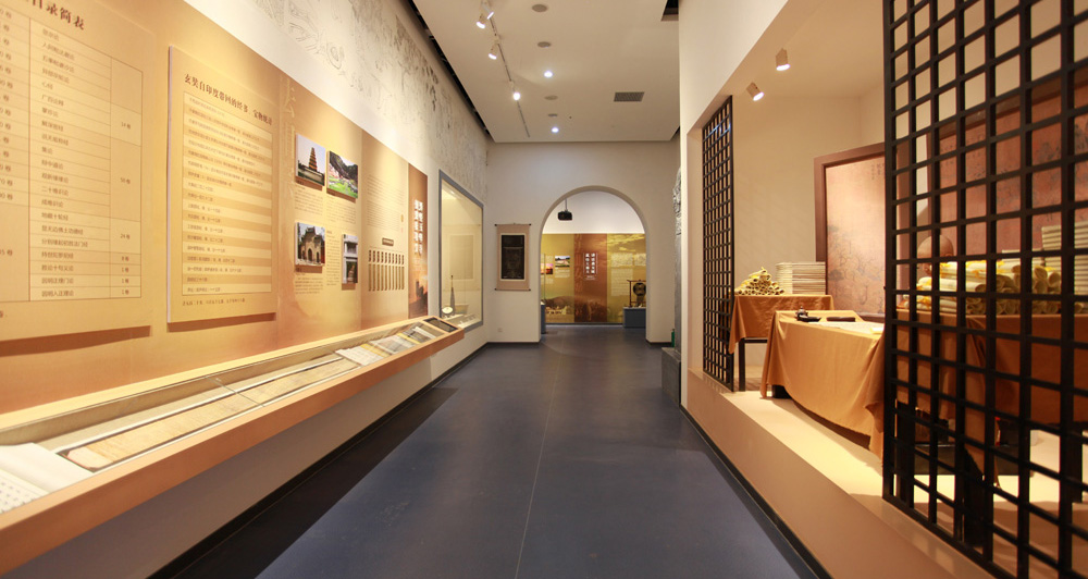 玄奘取經博物館位于甘肅省瓜州縣離縣城東2.7公里與313國道相交通往敦煌的丁字路口處,占地面積215畝,建筑面積4600平方米。玄奘取經博物館由三大部分組成,第一部分為服務區。第二部分為參觀區,由玄奘取經博物館主展廳,主展廳前的主題雕塑,精華洞窟陳列館和"玄奘西行銅雕"、"心經長碑廊"、"玄奘取經贊"、張芝紀念館等組成。第三部分為朝圣區,由玄奘紀念塔,玄奘紀念堂,影視廳,觀音殿,演出廳等內容組成。整個館區以大唐建筑風格為基調,以園林景觀為背景,呈現出西北地域特色。