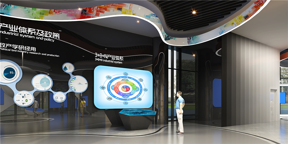重慶仙桃國際數(shù)據(jù)谷展示體驗中心,展廳主要布局了序廳、仙桃印象、規(guī)劃宏圖、創(chuàng)新平臺、綜合產(chǎn)品體驗區(qū)、幻彩走廊、產(chǎn)業(yè)洽談推進(jìn)區(qū)、影院共八大主題展區(qū),宣傳數(shù)據(jù)谷規(guī)劃理念和成果,是接待來訪領(lǐng)導(dǎo)、企業(yè)、嘉賓的高科技會客廳。