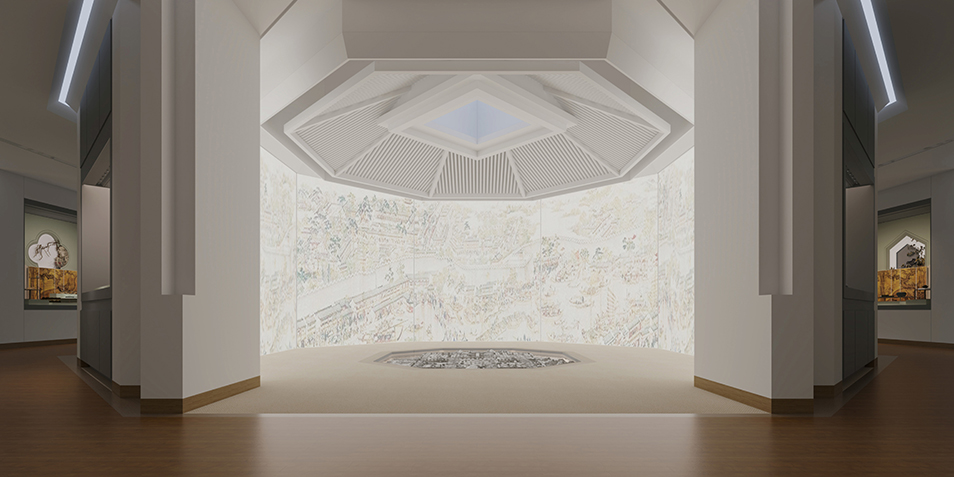 蘇州博物館西館包含蘇州通史展廳、蘇作工藝展廳、書畫館、探索體驗(yàn)館、國(guó)際合作館等展廳。金螳螂文化于一月初中標(biāo)通史館深化設(shè)計(jì)與布展實(shí)施項(xiàng)目,以模數(shù)化設(shè)計(jì)打造被光包裹的詩(shī)意空間。