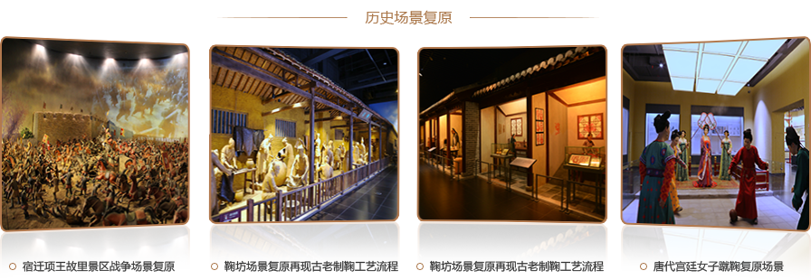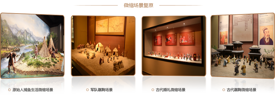 通過歷史考證還原歷史某一特定時刻如一場戰爭或一個場景、一個工藝流程,再現歷史真實性的一面,達到立體造型的藝術效果、濃縮歷史瞬間,增強展陳感染力,實現觀眾對已經流逝的場景的真實面貌的直觀了解。場景復原包括歷史場景復原、生態場景復原和微縮場景復原。