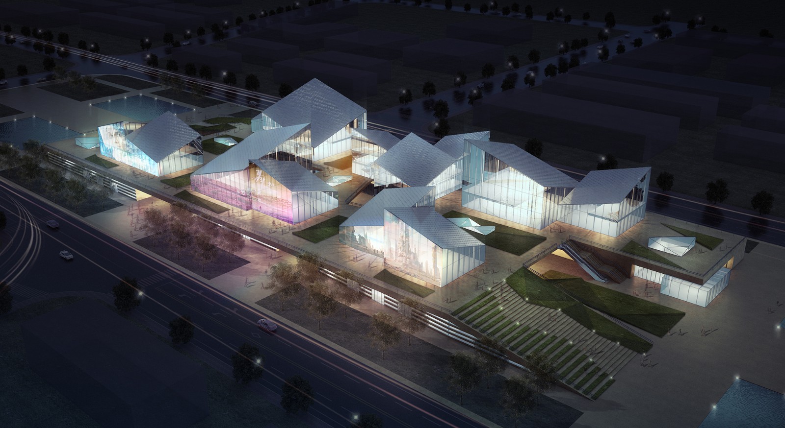 蘇州金螳螂文化發(fā)展股份有限公司設(shè)計(jì)團(tuán)隊(duì)以“晶艷全球、綻放異彩”為總體設(shè)計(jì)理念,精心打造浦江水晶小鎮(zhèn)入口區(qū)域的核心景觀,根據(jù)不同區(qū)域的功能業(yè)態(tài),規(guī)劃設(shè)置了多種空間尺度,形成獨(dú)具水晶神韻與起承轉(zhuǎn)合的空間氛圍,依據(jù)水晶的形、色、音等特性,采用多種高科技展示手段,讓水晶之美和科技之光渾然交融,打造既時(shí)尚又好玩的小鎮(zhèn)會客廳,讓游客獲得絕佳的體驗(yàn)和美好的參觀記憶。