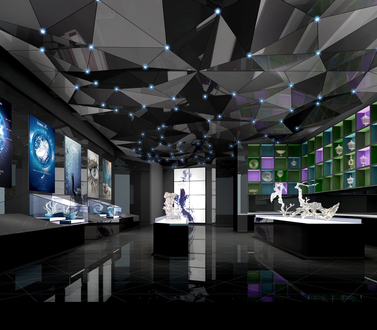 蘇州金螳螂文化發(fā)展股份有限公司設(shè)計(jì)團(tuán)隊(duì)的設(shè)計(jì)成果,將業(yè)主要求的“水之靈、晶之韻、光之幻、影之舞”的效果精彩地呈現(xiàn)了出來,讓水晶靈韻、傳統(tǒng)文化和浦江山水三個(gè)元素得到了完美的融合和體現(xiàn),獲得了業(yè)主的認(rèn)可和表揚(yáng)。將以專業(yè)的創(chuàng)意團(tuán)隊(duì)、強(qiáng)大的落地布展實(shí)力