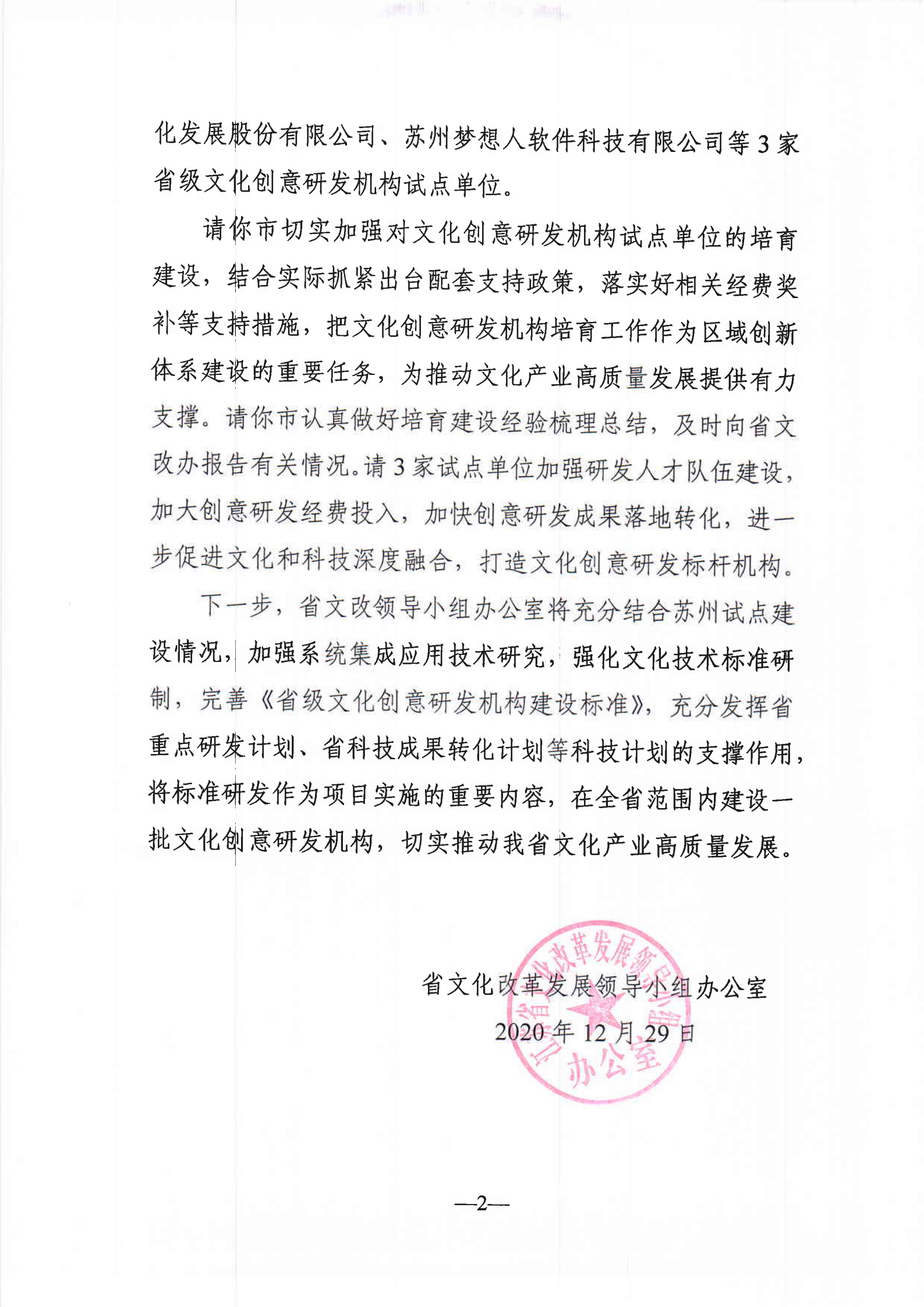 中共江蘇省委宣傳部、江蘇省科學(xué)技術(shù)廳、中共江蘇省委網(wǎng)絡(luò)安全和信息化委員會辦公室、江蘇省文化和旅游廳、江蘇省廣播電視局聯(lián)合發(fā)布了“關(guān)于認(rèn)定2020年度江蘇省重點(diǎn)文化科技企業(yè)的通知”,金螳螂文化公司榜上有名 。 為貫徹落實(shí)江蘇省《關(guān)于促進(jìn)文化科技深度融合的實(shí)施意見》,深入推進(jìn)文化與科技深度融合,推動文化產(chǎn)業(yè)高質(zhì)量發(fā)展,根據(jù)《江蘇省重點(diǎn)文化科技企業(yè)管理辦法》,經(jīng)各地各集團(tuán)推薦、專家評審、部門會商,現(xiàn)認(rèn)定蘇州金螳螂文化發(fā)展股份有限公司等45家企業(yè)為2020年度江蘇省重點(diǎn)文化科技企業(yè)。 HONOR 更多榮譽(yù) MORE THAN THIS... 除了獲得“江蘇省重點(diǎn)文化科技企業(yè)”此項(xiàng)殊榮外,2020年,金螳螂文化公司還獲得了“江蘇省優(yōu)秀裝飾企業(yè)”、“江蘇省民營科技企業(yè)”、“蘇州市建筑裝飾優(yōu)秀企業(yè)”、“江蘇省工程技術(shù)研究中心”、“江蘇省首批文化創(chuàng)意研發(fā)機(jī)構(gòu)”等榮譽(yù)。 金螳螂文化作為江蘇省率先試點(diǎn)的3家省級文化創(chuàng)意研發(fā)機(jī)構(gòu)之一,將加強(qiáng)研發(fā)人才隊(duì)伍建設(shè),加大創(chuàng)意研發(fā)成果落地轉(zhuǎn)化,進(jìn)一步促進(jìn)文化和科技深度融合,打造文化創(chuàng)意研發(fā)標(biāo)桿機(jī)構(gòu)。 中共蘇州市委宣傳部發(fā)布了2020年姑蘇宣傳文化人才名單,確定金螳螂文化董事長楊震先生為2020年姑蘇宣傳文化領(lǐng)軍人才提名人選。 憑借業(yè)內(nèi)領(lǐng)先的設(shè)計(jì)水平與精益求精的品質(zhì)追求,金螳螂文化全體員工齊心協(xié)力,同頻共振,攜手超越,愿在新的一年再創(chuàng)佳績!