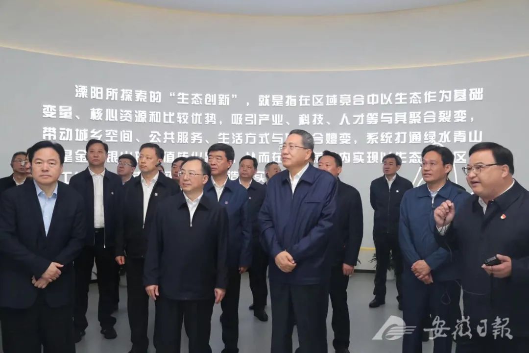 4月22日上午,由安徽省省委書記李錦斌帶隊的安徽省黨政代表團在江蘇學習考察。江蘇省委副書記、省長吳政隆陪同。 第一站是國家生態市、全國生態文明建設示范市、全國文明城市溧陽。安徽省黨政代表團冒雨來到溧陽生態創新展示館,考察當地探索生態創新的經驗做法和蘇皖合作示范區建設情況。 新聞素材來源:安徽日報微信公眾號 溧陽生態創新展示館 生態創新在溧陽 金螳螂文化匠心出品 Ecological Innovation 溧陽生態創新展示館位于江蘇省常州溧陽市天目湖游客服務中心一層、二層,建筑面積約6500平方米。 攜手溧陽天目湖景區,金螳螂文化通過前沿設計與優質施工全過程出品溧陽生態創新展示館,打造溧陽生態創新的城市名片、生態休閑旅游的網紅打卡點、生態經濟可視化的載體,致敬“兩山論”的創新實踐。 山、水、竹元素運用其中,輔以場景、多媒體的生動演繹,詮釋國家生態文明建設示范城市的現實樣板,呈現持續探索生態創新之路的大美溧陽。