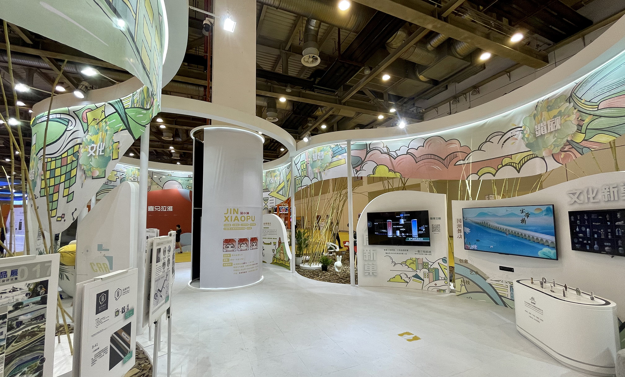 Gold Mantis 守望與創(chuàng)新同行,古韻與今風(fēng)同在。 十年經(jīng)驗(yàn)積淀,文化創(chuàng)意精彩紛呈, 第十屆蘇州創(chuàng)博會隆重開幕。 金螳螂文化聚力呈現(xiàn)張家港展廳 與金浦·新“巢”時代展廳, 邀您共襄盛會! 9月23日,為期三天的第三屆運(yùn)博會文創(chuàng)產(chǎn)業(yè)展暨第十屆中國蘇州文化創(chuàng)意設(shè)計產(chǎn)業(yè)交易博覽會(簡稱“創(chuàng)博會”)在蘇州國際博覽中心B1/C1館順利開幕。 本屆創(chuàng)博會以“設(shè)計引領(lǐng),數(shù)字賦能”為主題,分設(shè)3大主題展區(qū)、51個特裝展館、345家參展企業(yè)。 創(chuàng)博會張家港展廳 地道江南,“箱”遇港城。坐落于長江之畔的張家港,是一座以境內(nèi)天然良港命名的城市,從數(shù)百年間新成的沙洲,到如今生態(tài)宜居的文明城市,張家港的文體旅產(chǎn)業(yè)快速發(fā)展。 23日,蘇州市政府副市長王飏等 一行領(lǐng)導(dǎo)參觀指導(dǎo) 9月24日上午,江蘇省文化和旅游廳李川副廳長蒞臨張家港幸運(yùn)金屬工藝品有限公司展區(qū)指導(dǎo)工作,姚士榮大師向李廳長匯報了把非遺技藝融入文創(chuàng)和國宴器皿的創(chuàng)意。 由金螳螂文化出品的創(chuàng)博會張家港展廳,以“地道江南,相遇港城”為主題,分精華之地、精工之道、精品之風(fēng)、精選之物4大版塊展示張家港的地域風(fēng)貌、匠心民藝、發(fā)展引擎、港城味道。 金螳螂文化設(shè)計團(tuán)隊(duì)將展廳打造成了一個多功能集裝箱,融入竹編、風(fēng)車、拼圖等元素,呈現(xiàn)多彩的張家港物產(chǎn)與文化發(fā)展。不僅僅是散發(fā)光亮的集裝箱,更喻意遠(yuǎn)航的城市。 金浦·新“巢”時代 本屆創(chuàng)博會,金浦九號作為唯一一家參展的文化產(chǎn)業(yè)園,在進(jìn)館的C位展出。金螳螂文化進(jìn)行了整個展位“金浦·新巢時代”的設(shè)計,并作為產(chǎn)業(yè)園入駐企業(yè)參展。 200多平米的展廳內(nèi),以“科技+設(shè)計”為主線,講述城市更新的時代背景下,融文化、產(chǎn)業(yè)、創(chuàng)新為一體的金浦九號文化產(chǎn)業(yè)園協(xié)同園內(nèi)百企開創(chuàng)的新“巢”時代之故事。 23日上午,江蘇省人民政府副省長、黨組成員馬欣,江蘇省文化和旅游廳黨組書記、廳長楊志純,蘇州市政府副市長王飏,蘇州市文廣旅局黨組成員、副局長尤培東一同蒞臨金浦九號展位參觀指導(dǎo),聽取了金浦九號在“文化+科技”產(chǎn)業(yè)的創(chuàng)新實(shí)踐的工作匯報。 生活的藝術(shù),藝術(shù)的生活。金浦·新“巢”時代共展出文化新巢、科技新巢、人居新巢等六大主題的文化+科技新體驗(yàn),給廣大市民呈現(xiàn)一場“創(chuàng)新+創(chuàng)意”的盛宴。 流暢的圓弧串聯(lián)起各家企業(yè)的展示內(nèi)容,木屑與竹子的材質(zhì)凸顯“新巢時代”的主題,保證展廳整體性的同時兼顧了企業(yè)內(nèi)容的獨(dú)特性。 金螳螂文化帶來國潮舞動、文物探寶兩大互動展項(xiàng),豐富了展廳的文化體驗(yàn),增加了參觀的趣味性。 上合組織駐華大使團(tuán)參觀 此次蘇州創(chuàng)博會也是大運(yùn)河文化旅游博覽會的組成部分之一。9月23日,江蘇省文化和旅游廳、江蘇省人民政府外事辦公室聯(lián)合邀請60余位來自上合組織的國際友人參加“水韻江蘇·運(yùn)河行”活動。 當(dāng)天上午,來自哈薩克斯坦、吉爾吉斯斯坦、俄羅斯、塔吉克斯坦、烏茲別克斯坦、印度、伊朗,以及意大利、泰國、西班牙的駐華使節(jié)和代表參觀金浦九號文化產(chǎn)業(yè)園代表性入駐企業(yè)。 在金螳螂文化公司,駐華大使團(tuán)參觀了LED立體雕塑、數(shù)碼博古墻、海底世界透明屏等展項(xiàng),近距離感受讓文物活起來的現(xiàn)代多媒體數(shù)字技術(shù)。 “設(shè)計引領(lǐng),數(shù)字賦能”的創(chuàng)博會理念是金螳螂文化一直以來的追求。今后,金螳螂文化也將堅持創(chuàng)新表達(dá),以“創(chuàng)意+藝術(shù)+科技”跨界融合,致力于成為文化與藝術(shù)的傳播者。