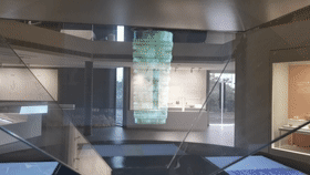 8塊通透的扇形玻璃圍合成圓,透過玻璃,可以觀察考古發掘的復原場景。