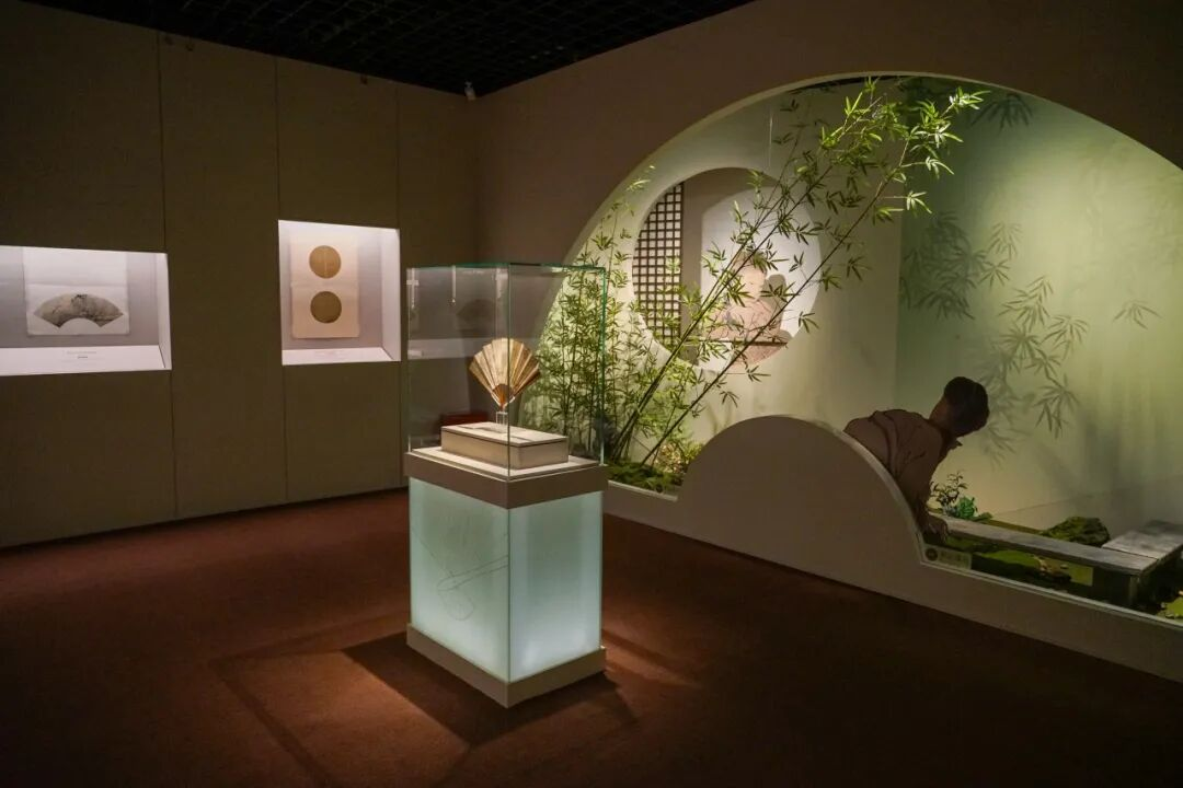 主線展示聚焦扇面書畫的發展脈絡,空間設計融入宋式建筑、明清園林及文人書齋的美學理念,通過由大到小、由外及內的空間序列,形成連貫的觀展流線。
